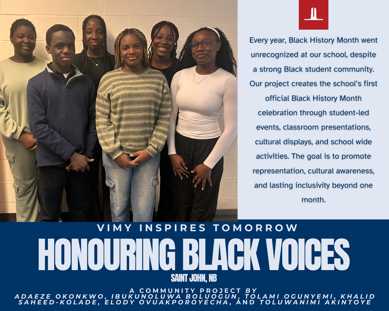 The Vimy Inspires Tomorrow program is made possible thanks to the generosity of donors, including the Government of Canada. Each year, the program highlights the ingenuity, leadership, and commitment of youth who are tackling issues, from cultural inclusion to technology, health, and community safety, with thoughtful, impactful initiatives.